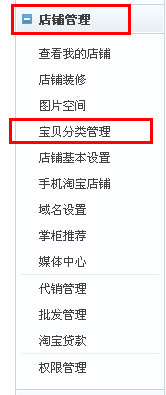 找到“店鋪管理”下面的“寶貝分類管理”,這個就是我們要添加分類的地方了,然后點擊“寶貝分類管理”,會出現這樣的頁面