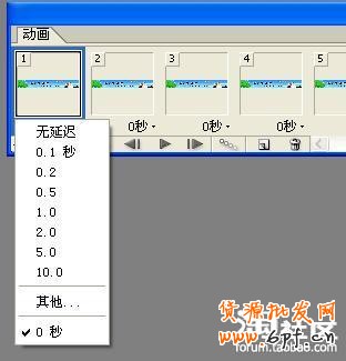 最后一步,用鼠標點擊每一幀右下角“0秒”字樣的下拉菜單,彈出如圖所示菜單: