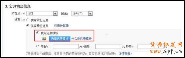 4) 回到商品編輯頁面-“寶貝物流信息”-“選擇運費模板”-“應用模板”,模板設置完成。