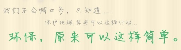 環保,我想大家完全可以想到這樣的方式,符合主流,這樣給大家的感覺是咱們正規,雖然我們的顧客群不一定全部是環保主義者。但至少我們有口號,我們給顧客的影響力也會越來越深。