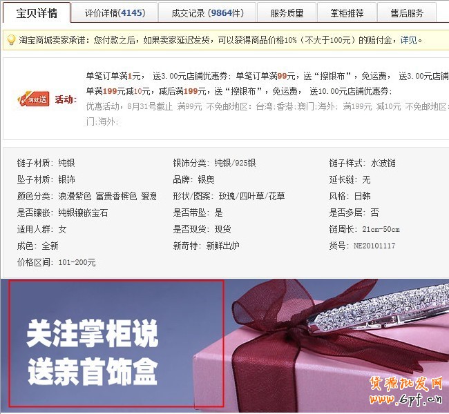 1、可以在我們的商品詳情頁(yè)面,放上我們的“關(guān)注有禮”,讓消費(fèi)者能夠在第一時(shí)間內(nèi)了解到相關(guān)活動(dòng)的信息。