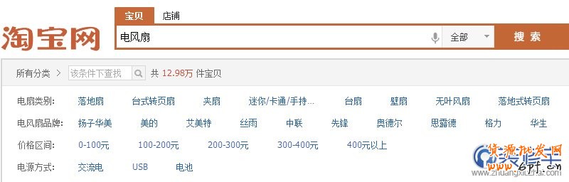 打開→三大不留點掏包點看木(淘寶網(wǎng)),關鍵字輸入你的產品標準名,比如:電風扇