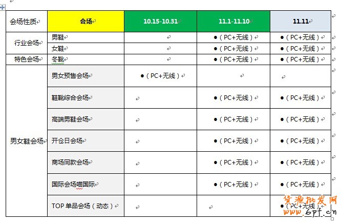 2014年天貓雙十一男女鞋導購會場時間節奏如下表: