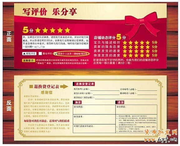 ⑥附帶其他:根據(jù)客戶情況,各個(gè)店鋪會(huì)發(fā)放差異化的東西。現(xiàn)在基本上全部客戶都會(huì)發(fā)放的是售后保障卡,標(biāo)明7天無(wú)理由退換貨。但針對(duì)新客戶,可以會(huì)發(fā)優(yōu)惠券來(lái)綁定客戶的消費(fèi);還有會(huì)員招募卡,羅列店鋪會(huì)員體系的詳細(xì)。折扣;品牌客戶會(huì)借此選擇自己的品牌故事,歷史由來(lái),以及品牌的宗旨和口號(hào)。針對(duì)老客戶,可以發(fā)放包郵卡及致謝信,感謝一直以來(lái)的支持。