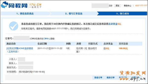 5、提交訂單后即可預(yù)訂成功。您成功入住并離店后的下一周周五前就會獲得到相應(yīng)的集分寶返利。