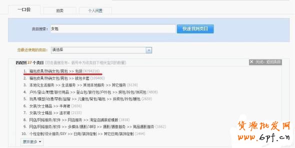 在我們要向店鋪內增加產品的時候,都需要在后臺點擊“我要賣”來進行添加產品(數據包上傳除外),而在點擊“我要賣”之前只需要將你所要出售的產品在快速找到類目中搜索一下,如上圖搜索之后出現的10個類目中,排在第一個的便是最正確精準的類目,這樣便可以避免上述所講的類目不精準錯誤出現,而達到正確精準的寶貝類目,這對于寶貝的排名優化與之后是否能夠通過類目獲取免費的流量至關重要!