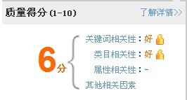 質量得分主要考慮關鍵詞相關性、類目相關性、屬性相關性、買家反饋信息等綜合因素的一個分值。質量得分在1-10之間,最高分是10分。