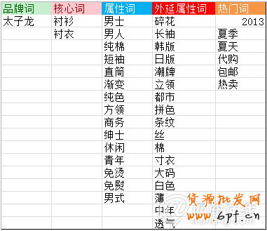當然,高手們會把這個表格做得更大更多。但是我們是屌絲賣家,這樣就差不多了。這里啰嗦一下,屬性詞是把我們寶貝標題、推廣標題和屬性里有的詞都抽出來,而外延屬性詞是把我們剛才沒有抽到的,但是我們又覺得還挺好的、容易被搜索到的拿來。