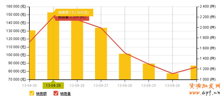 這是4月下旬最后一周的銷(xiāo)量,明顯看出在價(jià)格提高之后,逐漸再次走高的銷(xiāo)量圖。