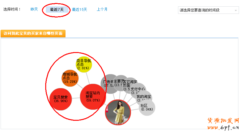最近7天流量主要集中在淘寶的搜索,說明自然搜索是多么的重要,這個大家都知道的。