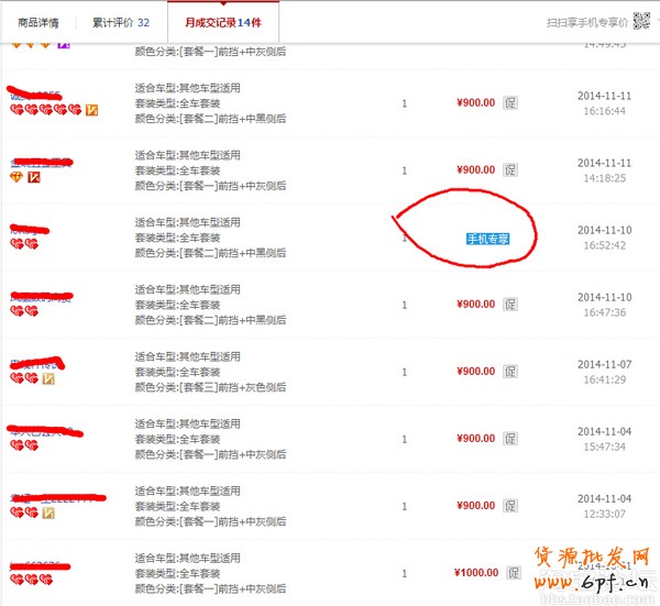 5、設(shè)置手機(jī)專享價(jià)。手機(jī)專享價(jià)是針對無線端的特有特權(quán),只要設(shè)置手機(jī)專享價(jià),無論價(jià)格差距多大,PC端銷售記錄均不會(huì)顯示客戶具體拍下的價(jià)格,有效保護(hù)手機(jī)專享價(jià)的特權(quán)。