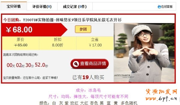 f 團購秒殺,通過設置團購秒殺活動,設置安裝到所有寶貝詳情上面,通過設置參團人數和倒計時的,促銷買家的參團欲望,快速下單購買