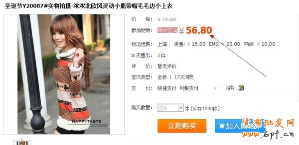 a 最直接的方式就是限時打折,對寶貝做打折后,給買家最直接的刺激,所以要打幾折,這個要根據各個類目,各自的寶貝自身的情況進行折扣的設置,設置3,5折,這種的效果當然是最好,如果是數碼,3C,手機類的肯定打不到這么低的折扣,一般8折,9折就可以了 ,設置打折還有幾個技巧,要給你的打折取好好的活動名稱,比如慶祝五一,國慶大促銷,季末清倉等這樣的活動字眼,刺激買家的購買欲望。