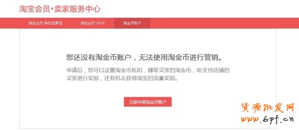 2、進入淘金幣賣家中心,點擊【立即申請淘金幣賬戶】