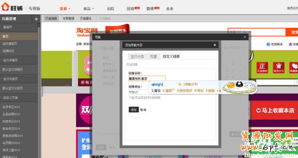 2.進入裝修店鋪,選中導航模塊,點擊“編輯”,在導航設置里點擊添加,然后選擇“自定義鏈接”,在鏈接名稱那里寫上要顯示的字樣,比如“搬家清倉”,然后在鏈接地址那里寫上咱們的活動頁面的鏈接,點擊保存,確定就可以。