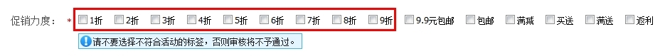 ★ 清倉力度: 若在促銷原因中選擇“清倉”,折扣力度只能選擇1-5折,請慎重選擇。