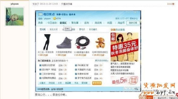只要將你加上促銷匯應用的旺旺每日焦點截圖直接回帖