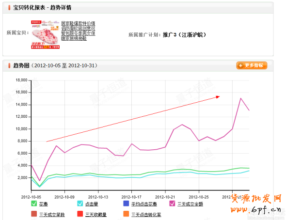 成長期是一個加速轉化率的過程,此刻將加大優質關鍵詞入口的搜索排名,目的是達到快速引流,以下寶貝數據截圖,表明該寶貝流量得到明顯提升: