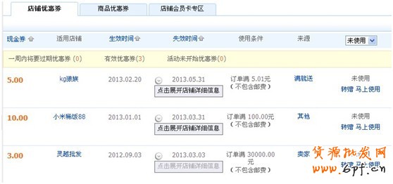 無論顧客的消費能力有多高,都存在一種占便宜的心里。經常能看到,店鋪會同時發放10/20/50元,三檔優惠券,然后條件分別是滿100元、滿200元和滿500元使用。這樣分檔,還不如不分檔,因為形成不了大的差別。一般,買家打開自己的淘寶,同時幾家店鋪的優惠券會展現在他們面前,如果優惠券金額過低,如下圖的3元,相比其他店鋪的5元、10元,就會讓買家失去使用的興趣。