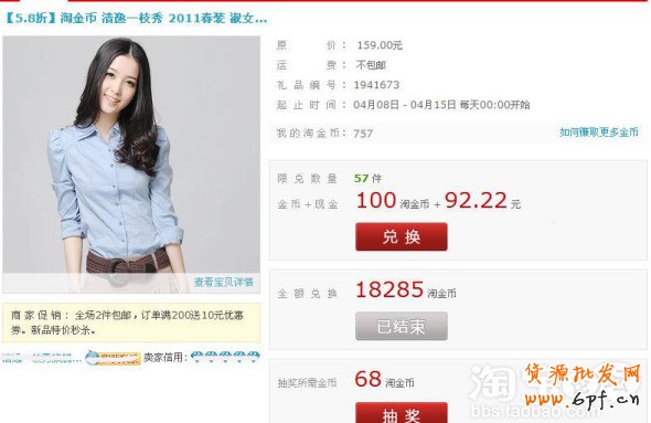 原來159元的衣服現在只要92.22 元加上100淘金幣就可以買到了,如果你有18285淘金幣,那這件衣服你不用花錢就能兌換了,很吸引人吧。那淘金幣要怎樣賺取呢?看下面的幾種方法: