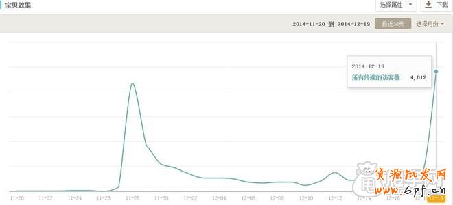 從上圖可看到,從11月28日活動(dòng)上線之后,流量就開(kāi)始大量增加,從圖中也是可以看得出的,但是比較遺憾的是保溫杯的關(guān)聯(lián)銷(xiāo)售效果不怎么理想,很少會(huì)有人買(mǎi)兩個(gè)以上的,活動(dòng)過(guò)后寶貝的流量持續(xù)下滑,最終使得訪客數(shù)保持在250~350左右。于是我就開(kāi)始開(kāi)直通車(chē)引流,同時(shí)再次對(duì)標(biāo)題做優(yōu)化……在雙12過(guò)后流量就開(kāi)始增長(zhǎng)了,在19日的時(shí)候終于就開(kāi)始爆發(fā),訪客數(shù)還超過(guò)了11月28日?qǐng)?bào)的活動(dòng)呢,但是只可惜轉(zhuǎn)化率沒(méi)有報(bào)名活動(dòng)的轉(zhuǎn)化率高(這點(diǎn)比較可惜)。