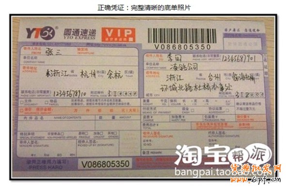 - 憑證不清晰/不完整即:提供的物流底單照片不清晰或不完整。完整清晰的底單與不清晰不完整的憑證樣圖如下: