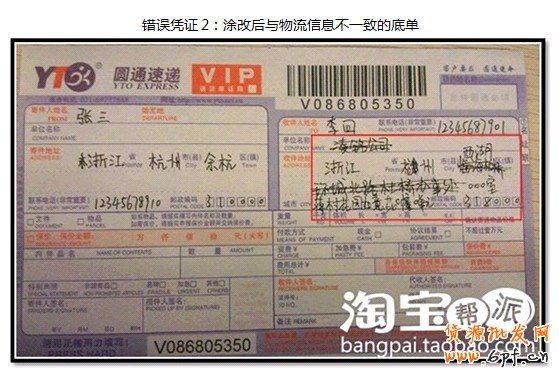 - 憑證與物流信息不一致即:底單上的收貨信息與快遞官網(wǎng)的跟蹤信息不一致。
