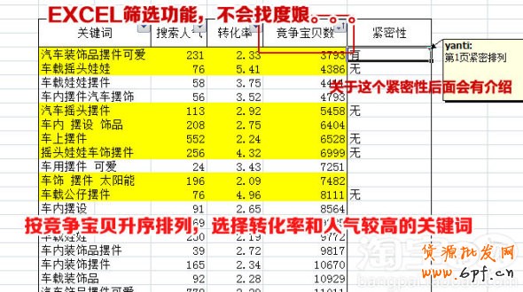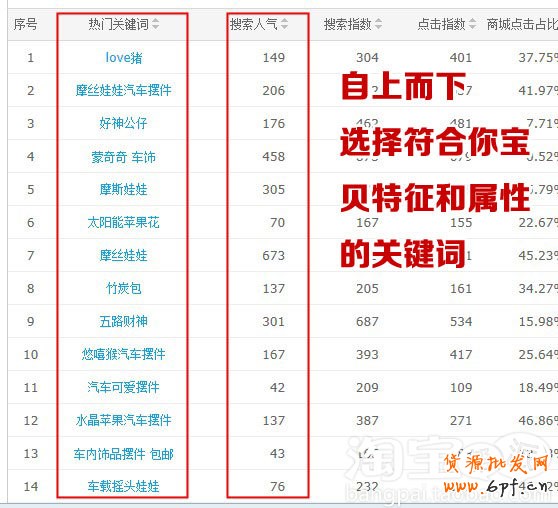 2.列出每個關鍵詞的 搜索人氣 轉化率 競爭寶貝數 搜索排名