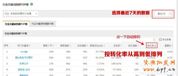 2.按轉化率從高到低,做一個排列,這里我選擇的是最近7天的數據。