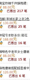 這里我走的是低價策略,幾近零利潤的銷售。這里我自己的想法是盡管利潤低,但圖的是人氣,利用人氣希望能待到店內(nèi)其他寶貝的銷售。如下圖所示:淘上最的最多的,賣149元,最近銷售1617。我只賣88元,不包郵(這是別家的)