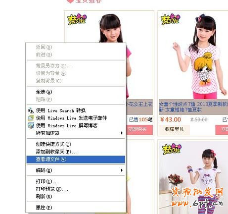 一:用瀏覽器打開要復制導航CSS店鋪的首頁,在他店鋪的空白處右擊鼠標--選擇“查看源文件”(或者是“查看源代碼”、“查看網頁源代碼”)