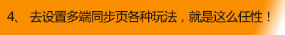 什么叫多端同步:顧名思義,多端同步頁面是指多個終端(電腦、手機、平板等)之間可以直接同步裝修數據的頁面。目前,pc端旺鋪裝修是在旺鋪裝修后臺,手機店鋪裝修是在無線運營中心后臺,而pad店鋪無法裝修。賣家對于不同終端重復裝修的人力物力成本較高。但實際上有一些頁面的內容是可以共用的,比如做一個促銷活動頁、臘八搶年貨、好評有禮等頁面,甚至店鋪首頁,都是可以在不同終端共同使用的。PC上裝修一次,直接同步到手機、pad端。