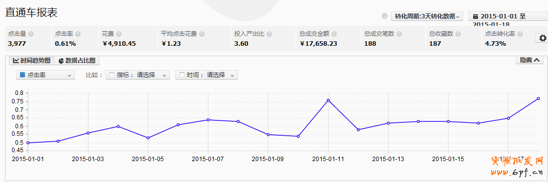 從以上圖片中,我看可以很清楚的看到:第一款寶貝的點擊率為0.31%,第二款寶貝的點擊率為0.40%,很明顯,第一款寶貝的點擊率是拉低我們計劃點擊率的寶貝。