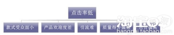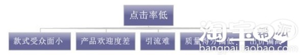在直通車推廣中,車能不能順利開起來,點擊率是最最核心問題,不僅是影響質量得分的核心因素,也是打爆引流的先決條件,凡是爆款寶貝,點擊率一般都不會低。凡是點擊率很低的寶貝,注定很難成為爆款,就算勉強推起來,但是付出的代價和成本絕對很高。所以點擊率決定直通車的成敗,決定爆款的未來,相反,點擊率低是什么原因,有什么后果呢?大家可以看一下二張思維導圖。