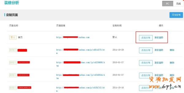 (3)定制成功的頁面,可以在上述已經定制的列表中查看頁面的點擊分布和裝修趨勢;