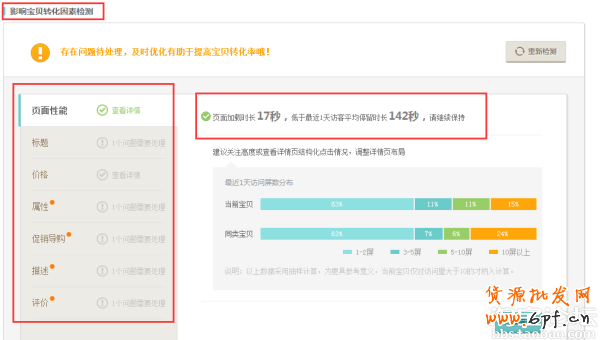 ◆寶貝效果里面的寶貝溫度計我認為是這次更新以后對單品寶貝比較好的一項功能,尤其是針對一些中小賣家,運營能力不強的掌柜,這樣的功能簡單明了,很直接的就能讓掌柜看出自己寶貝的問題所在,一步到位的去發現問題,給出解決建議,讓后讓掌柜或者運營去做出解決方案,這項功能也點個贊!