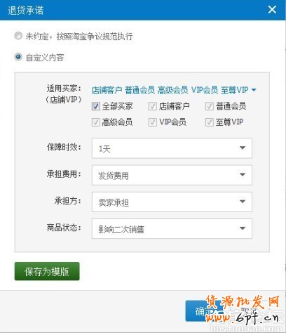 這些問題不需要再擔心,交易約定二期新功能能讓您更加自主設置“針對哪些會員開放服務”,充分享受服務自主承諾。已上線的破損補寄、退貨承諾、品質承諾三個交易約定,可以設置服務適用人員,例如:商品提供15天無理由退貨,退貨和發貨郵費由賣家承擔,店鋪vip級別3級以上會員才能享受,V3以下的買家享受基礎的服務保障。