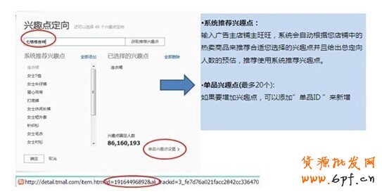 原理解釋舉例:我現在主推連衣裙單品,那么最近搜索過連衣裙的人就是我的潛在買家,我在興趣點設置選擇連衣裙,那么最近搜索過連衣裙的人就能優先看到我的推廣圖片。