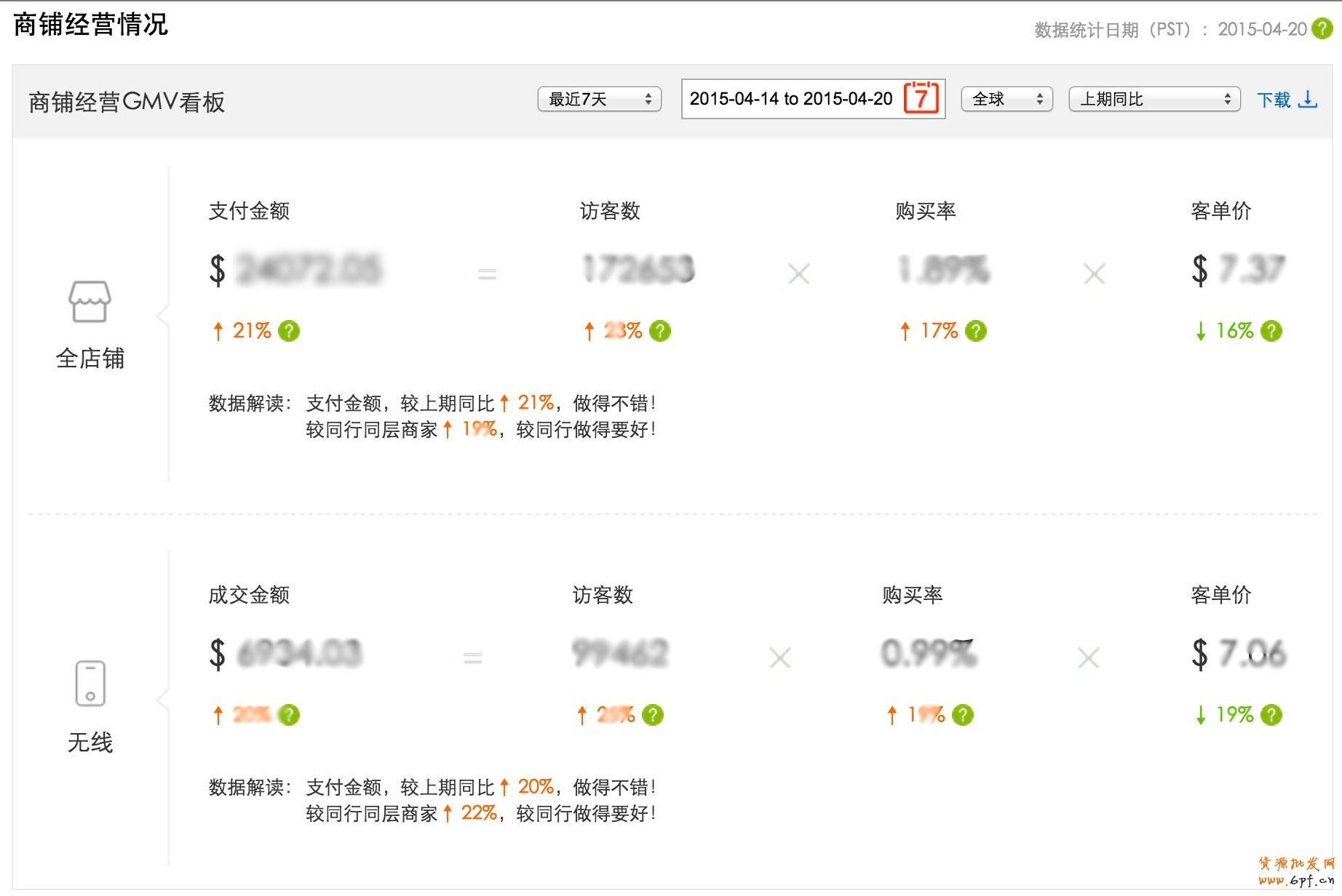 新增了店鋪整體&無線成交分析查看功能,可查看近7天,30天或者自定義時間數據,幫您清晰解讀GMV指標數據,做好店鋪相關提升;數據可下載。