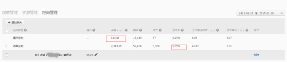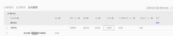 圖1,是無線端最近半個月的定向自家效果,可以看到點擊率有5.62%。
