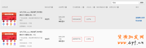 選擇流量最大,點擊率的最好資源位,無線_app_淘寶首頁_焦點2和3,無線_app_天貓首頁_焦點2是最常用的3個位置。