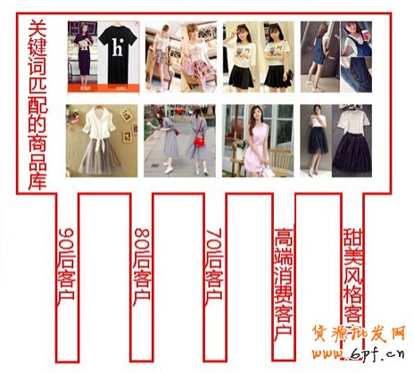如圖上,所展示在客戶所搜索:“連衣裙”這個關鍵詞的時候,個性化機制就好比篩選機器一樣,將適合各客戶標簽通路的產品篩選出來最終展示給客戶,比如90后客戶標簽、80后客戶標簽等。