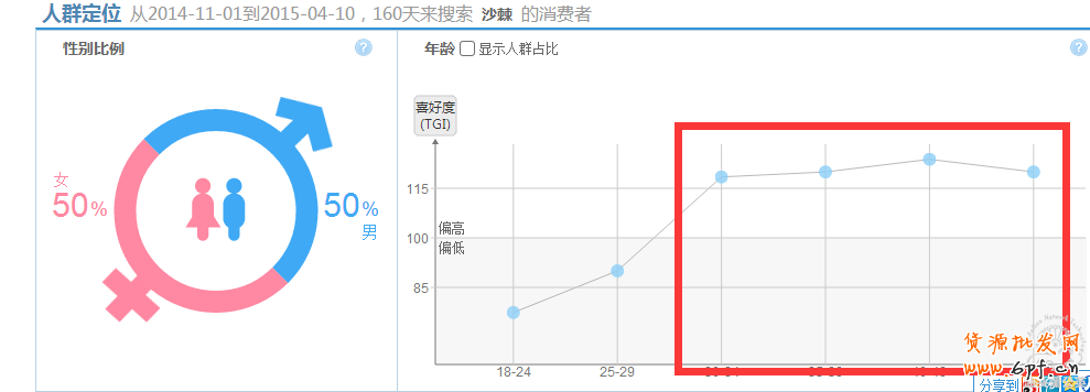 通過淘寶指數對此款寶貝搜索人群進行分析: