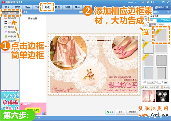 三、為了讓圖片的整體更具有特色,可加上一些飾品為圖片增添色彩,我在美圖秀秀上方找到飾品——其實飾品,把蕾絲花邊添加到每張素材上。