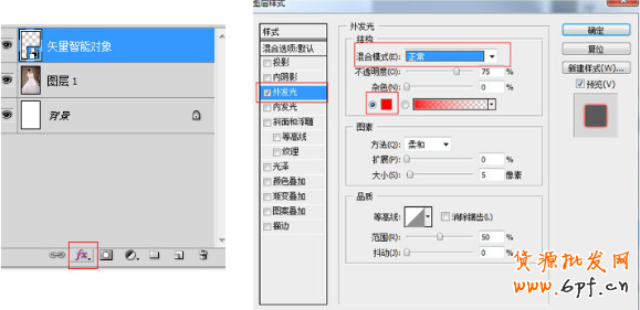 7、之后就是給他們添加圖層樣式了,選擇添加圖層樣式,外發光-混合模式[正常],顏色自己選一個喜歡的,其它的參數自己設置,也可以直接默認。