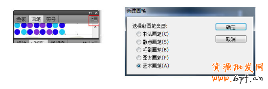 3、用選擇工具選中這個橢圓,按F5,調出畫筆面板,單擊畫筆面板右邊的小三角,新建畫筆-藝術畫筆,確定