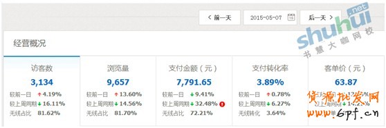 先看剛接手2015年5月7日的交易額和流量情況,日銷售6000~7000元左右: