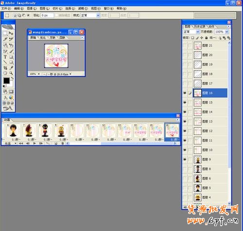 12、點擊工具箱中最下方的按鈕,可以切換至Imageready軟件中來繼制作動畫