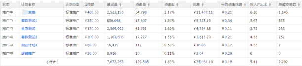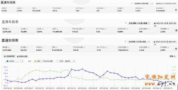 首先我們來看下直通車報表的數據,以下為直通車操作后的各階段數據: