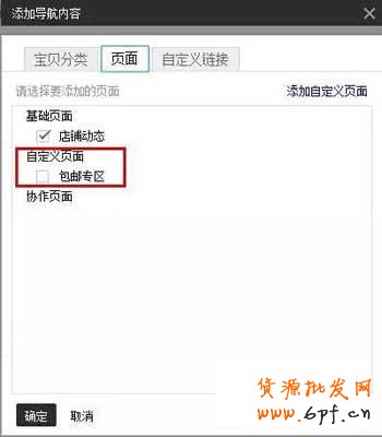 添加導(dǎo)航內(nèi)容如下圖所示:寶貝分類(lèi)、頁(yè)面、自定義鏈接。